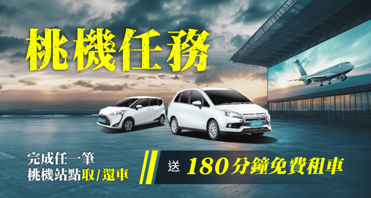 🔹 活動期間在桃園機場P1或P2站點完成任一次取車或還車,贈60分鐘免費租車優惠券3張